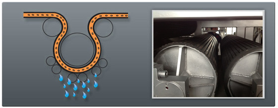 木薯渣固液分離設備技術特點:傳統的帶式固液分離設備以撐緊網帶對物料進行受力,對于污泥類還行,但是對木薯植物根渣類就行不通了,所以我們在原來的基礎上加上了對壓輥,以對壓的形式對物料進行對壓,效果顯倍增加。